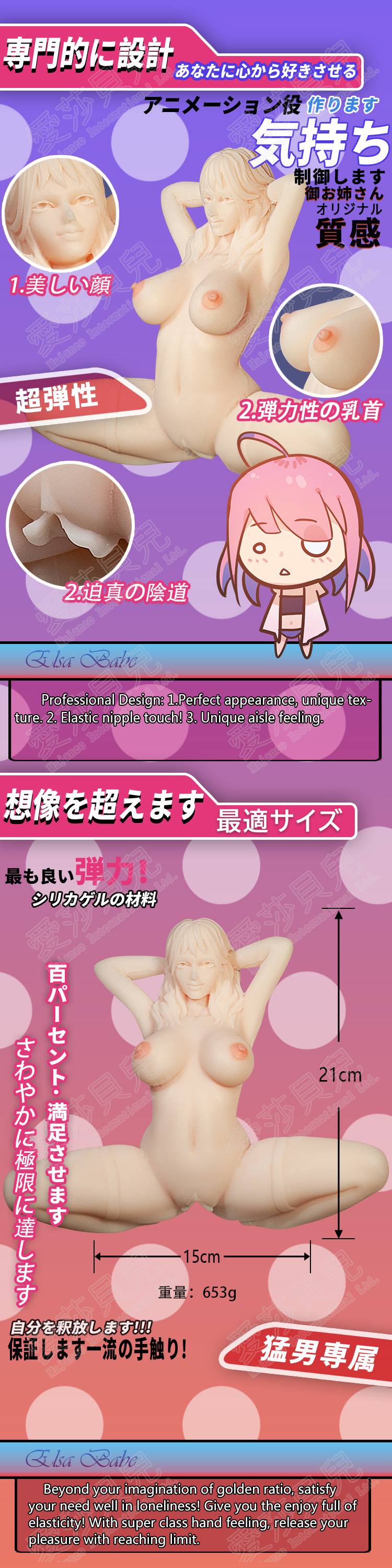 Product DescriptionPlayful charm. Deep, responsive sensation. The SSL040 Tao Dan Dan anime silicone masturbator is designed for users who want a lively aesthetic paired with a deeply engaging experience. Inspired by Elsa Babe’s signature anime style, it blends a playful visual identity with precision internal engineering. Crafted from premium platinum silicone, the exterior feels soft, elastic, and skin-like, adapting naturally to every movement. Inside, the tunnel features detailed layered textures and intricate ridges that create evolving pressure and enhanced friction, delivering a progressively intensifying sensation. Elsa Babe products are known for combining high-quality silicone with advanced internal structures, offering realism, durability, and easy maintenance. Compact, lightweight, and discreet, Tao Dan Dan is perfect for users seeking a smooth start with a steadily deepening experience. Key Advantages1. Premium Platinum SiliconeSoft, body-safe material with realistic skin-like elasticity and long-lasting durability 2. Advanced Textured TunnelLayered internal design creates evolving pressure and dynamic stimulation 3. Compact & DiscreetEasy to store and use privately without bulk 4. Playful Anime-Inspired DesignUnique aesthetic that enhances both visual appeal and experience 5. Easy Cleaning & MaintenanceNon-porous silicone allows quick cleaning and long-term hygiene FAQQ1: What material is used?This product is made from premium platinum silicone, known for its softness, durability, and realistic feel. Q2: How does it differ from other models?Tao Dan Dan focuses on progressive stimulation, offering a smooth entry with increasing intensity. Q3: Is it suitable for beginners?Yes. Its gradual build-up makes it beginner-friendly while still satisfying experienced users. Q4: How do I clean it?Rinse with warm water and mild soap after use, then air dry completely. Q5: Is shipping discreet?Yes. All packages are shipped in plain, unmarked packaging for full privacy. |